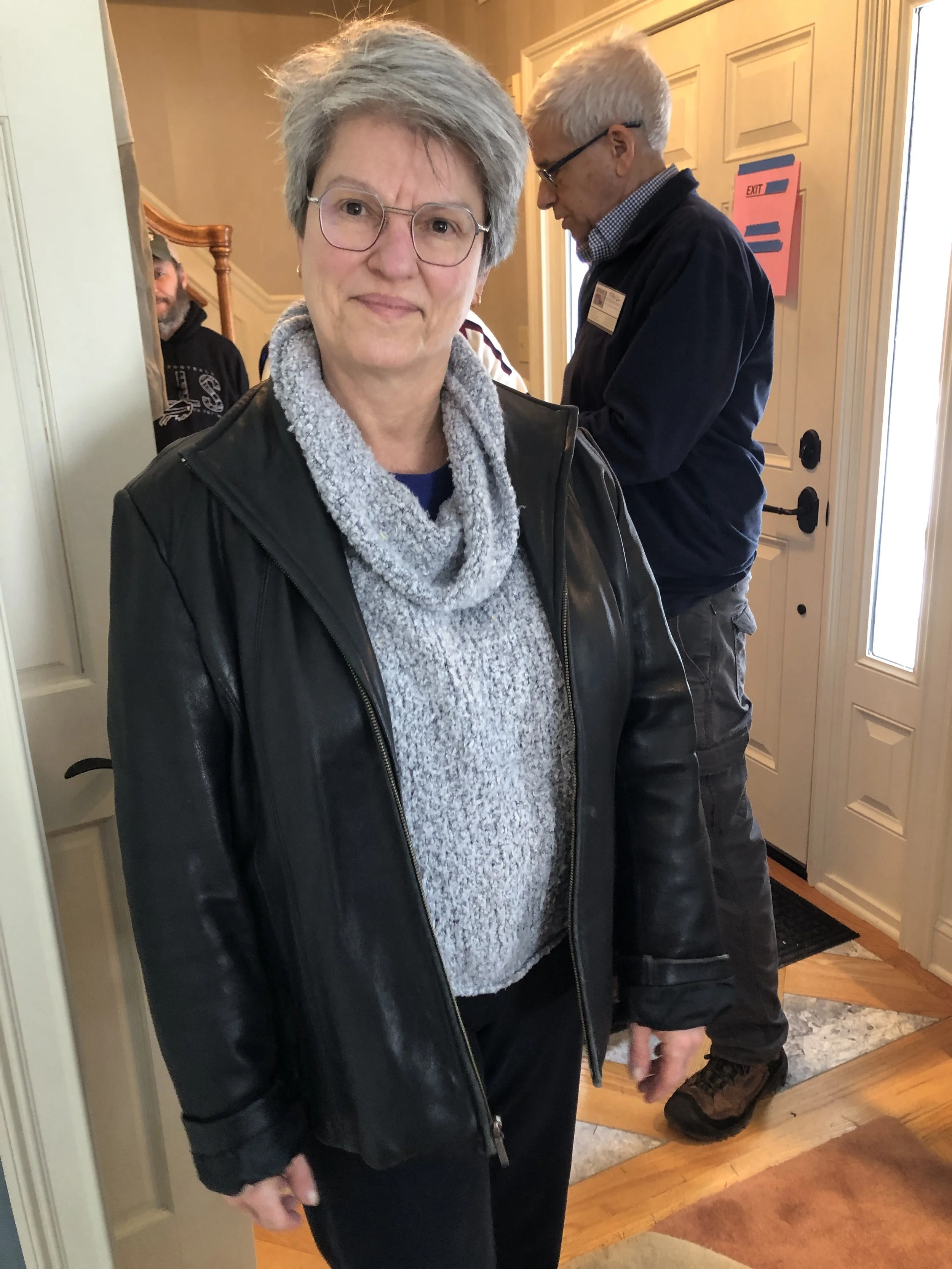 Apropos of nothing, Bon Mot CEO Daniela G. shows off her estate sale score: leather jacket $18, cleaning cost $99. Money well spent. Photo by Author’s son.